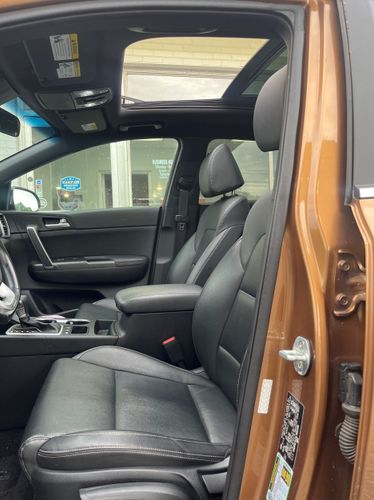 Front seatback upholstery: Plastic front seatback upholstery